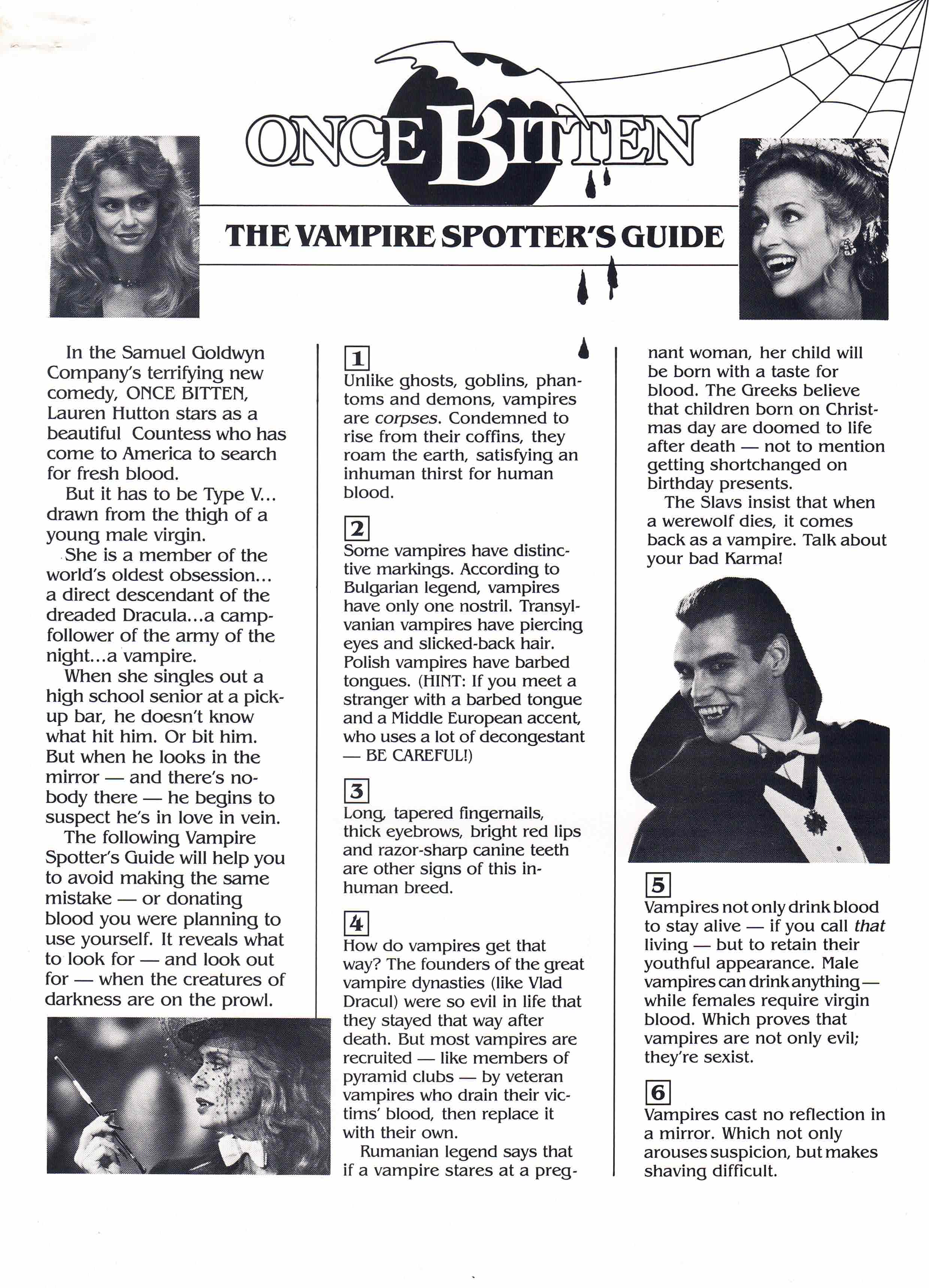 | Once Bitten opened in the United States in November of 1985, followed by West Germany in 1986, and then cut a swath through France, Poland, and Eastern Europeclosely following the brutal, destructive path of Hitler's Third Reich during World War II. It has since played throughout the world, where people of all races, creeds and religions have joined in the communal experience of not laughing at my jokes: |