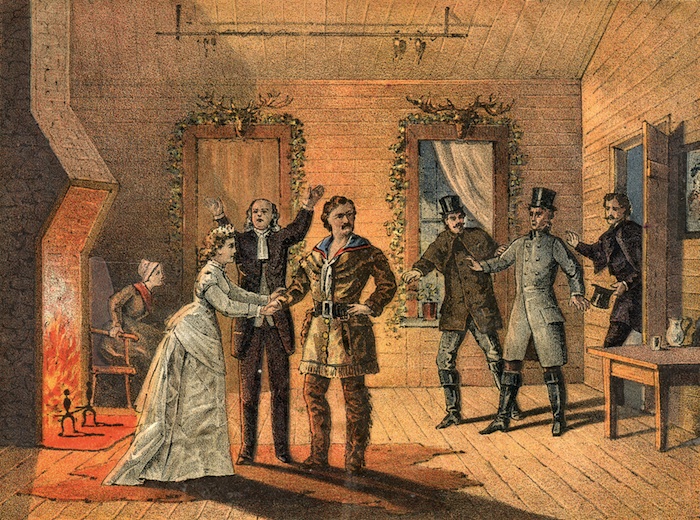 Finally, Hackett brought the show to the nation's capital in 1833, when Hackett played Wildfire scenes from the play in a command performance for the Washington elite, with David Crockett himself in attendance: