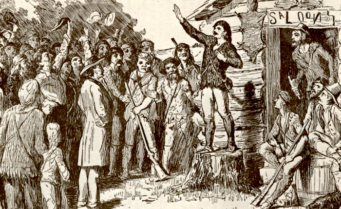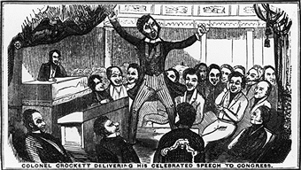 David first campaigned for the Tennessee state legislature in 1821. At debates, he always waited to speak until after his opponents, so that he could learn the local issues on the fly. If he was forced to talk first, he would tells a few jokes, then invite everyone to the nearest barwith the drinks on him. (This is a tactic he would employ many times during his political career.)