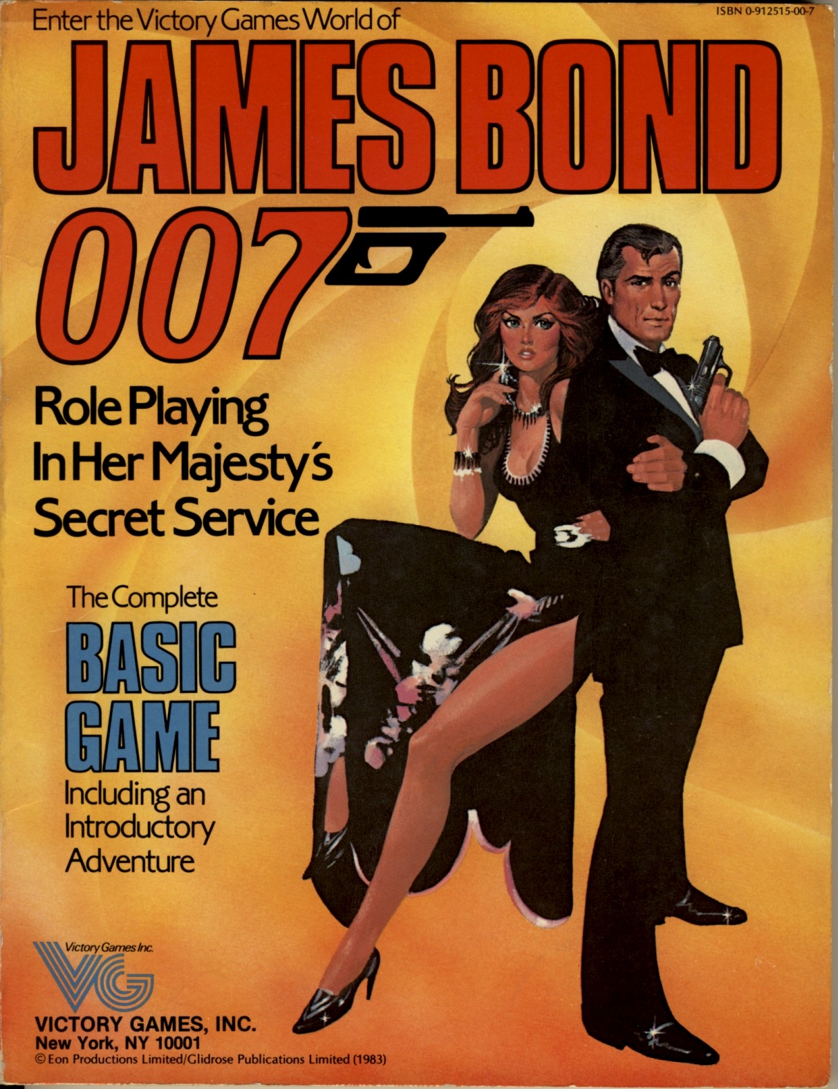 The image of James Bond on the cover of the game box and supplements is intended to be a composite of actors Sean Connery and Roger Moore, who were each portraying James Bond in movies at the time of publication (in Octopussy and Never Say Never Again).