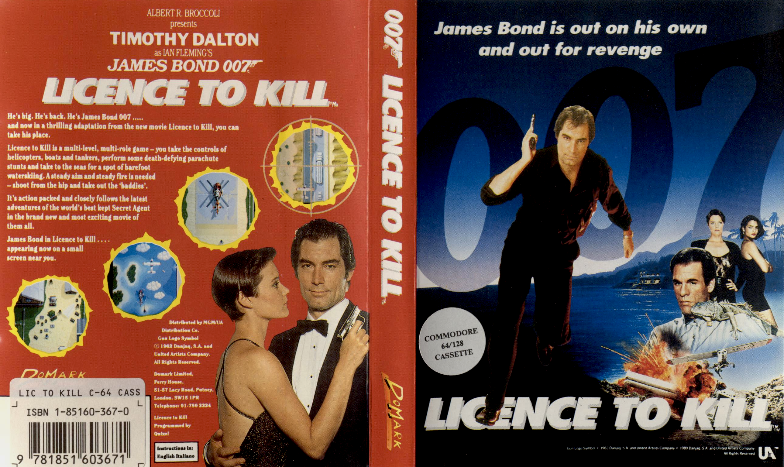 In April 1989 -- two months before the film opened -- the computer game adaptation of Licence To Kill hit store shelves for IBM PC, Amiga 500/600, Commodore C64/128, Spectrum 48K, Amstrad CPC, Atari 8-bit and Atari ST. It is a suprisingly varied top down shooter, as Bond tries to avenge the death of Mrs. Felix Leiter, and hunt down the killer and drug baron Sanchez. It takes you through 6 scenes from the film, using helicopters, by foot, mid-air, underwater, behind the wheels of a tanker truck, and most memorably (at least in the film) on water-skis. The game was also developed for the Nintendo Entertainment System (NES) by Tengen, but was unreleased as the Domark publishers felt that too much time had passed since the film's release and so the game would be irrelevant. But unlike the movie, the game proved more successful than other recent 007 outings, receiving positive reviews and selling well above expectations across all platforms.