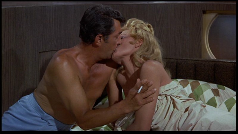 Ann-Margret, in one of her earliest roles, at least dances with a great deal of energy (at one point the camera zooms into her breasts and goes split-screen so we can watch four breasts jiggling). At one point, Martin rips off her miniskirt, which contains an explosive, and hurls it at a wall decorated with Frank Sinatra's picture. Dino, Desi, & Billy, a popular rock and roll group of the day which featured Martin's real-life son, Dean Paul Martin, makes a guest appearance.