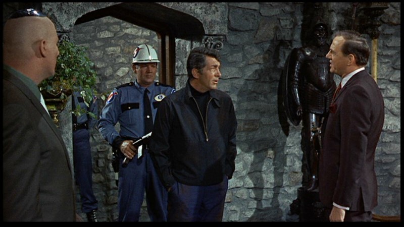 The Matt Helm paperback series, written by Donald Hamilton, were ideal, because they were about a hard-boiled government assassin, like Bondonly he worked for the United States instead of Britain. Critic Anthony Boucher even wrote: "Donald Hamilton has brought to the spy novel the authentic hard realism of Dashiell Hammett; and his stories are as compelling, and probably as close to the sordid truth of espionage, as any now being told." But any thought of a serious spy franchise flew out the window faster than a bullet from a Ninja rocket gun when Allen cast crooner Dean Martin as Helm. Most famous as the straight man for Jerry Lewis, then for his membership in Sinatra's "Rat Pack," Martin had his own variety show on TV, singing the latest hits and doing an impersonation of a lush (how much acting went into the lush impersonation depends on who you talk to).