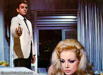 Italy's post-Bond filone was a veritable torrent. To begin with, there were the OPERAZIONE movies, 10 thrillers rushed into release between 1961 and 1967. Less a series than a marketing plan, these were a disparate bunch of pictures artificially squeezed together under the Operation Whatever rubric. For example, OPERAZIONE PAURA (1965) is none other than Mario Bava's creepy KILL BABY KILL, about a house haunted by the spirit of a little girl. As horror buffs know, it has nothing whatsoever to do with spies. In the same vein, OPERAZIONE GOLD INGOT (1961) was originally a French comedy thriller called EN PLEIN CIRAGE, made the year before DR. NO and retitled to cash in on the spy craze. The "series" peaked in 1965, immediately after the record-setting success of GOLDFINGER, with the release of six films in a single year. Though Italian filmmakers sensed that Bond fever was waning, they continued to churn out variations on the theme for several years, some of them truly amazing.