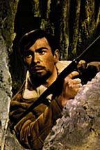 During one day's shooting, (Michael) Connors ran the equivalent of five miles through almost impenetrable Brazilian jungle. It was a chase sequence that had to be filmed from all angles, over and over again in the soggy temperatures. In another chase sequence filmed inside the famed statue of Christ on the Corcovado, some 3,000 feet above Rio de Janeiro, Connors had to race up iron ladders for some 90 feet, a dozen or more times before director Henry Levin was satisfied. Then just to top this one, the actor was required to climb outside and onto the top of the head of the statue, with the wind whipping him off balance and a sheer drop of 3,000 to the bottom of the mountain, if he missed his footing. In another phase of the statue chase sequence, director Levin dreamed up a thriller in which Connors had to stage a fight with Oliver McGreevy on the statue's parapet, a ledge only a few feet wide, with the same awesome 3,000 foot drop waiting for one misstep. No double was used.