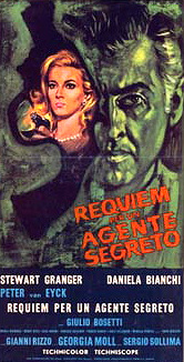 Stewart Granger and Daniela Bianchi slum in Italy. In 1965, we saw the release of REQUIEM FOR A SECRET AGENT, directed by Sergio Sollima and starring Stewart Granger as agent John "Bingo" Merrill; and Daniela Bianchi, who three years earlier played opposite Sean Connery in FROM RUSSIA, WITH LOVE, appears in yet another Italian knock-off. Piero Umiliani of 'Mah Na Mah Na' fame, penned a suitably dramatic and fast paced score for this 1967 James Bond wannabe movie. Umiliani was arguably one of the worlds most well known and proficient composer/musicians in the world of Jazz, and is still available as a soundtrack recording (good luck finding the movie, though).