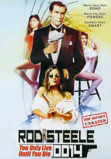 Rod Steele 0014: You Only Live Until You Die was released in 2001 with a DVD release date of April 30, 2002. The film is a 93-minute spoof on the James Bond franchise that stars Robert Donovan as Rod Steele, agent 0014. It is sometimes categorized as an erotic comedy, a parody or satirical in nature. The film was written and directed by Rolfe Kanefsky and produced by New Concorde Home Entertainment.