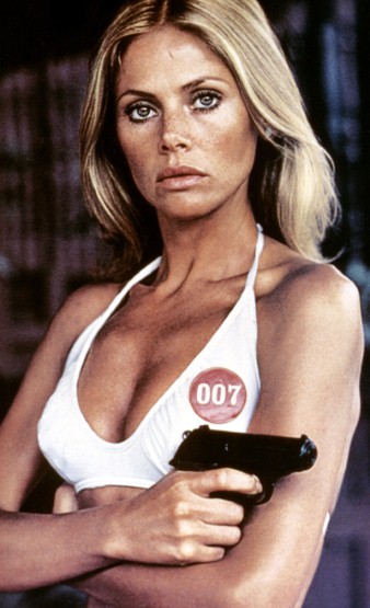 Adams played Andrea Anders, Scaramanga's girl, who seduces Bond in order to convince him to kill Scaramanga. "Doing a love scene with Roger Moore became the toughest thing in the world., because that's when he'd choose to make the most jokes. I'd want to crack up and roll around in bed laughing." (Is that a compliment?) Anyway, the two were rumored to be having an affair.