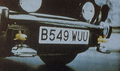 The car was stocked with bullet-proof glass, a rocket jet propulsion unit behind the rear license plate, a head-up display on the windshield, studded tires, automatic missiles, protruding skis for driving on ice, and laser beam cutters.