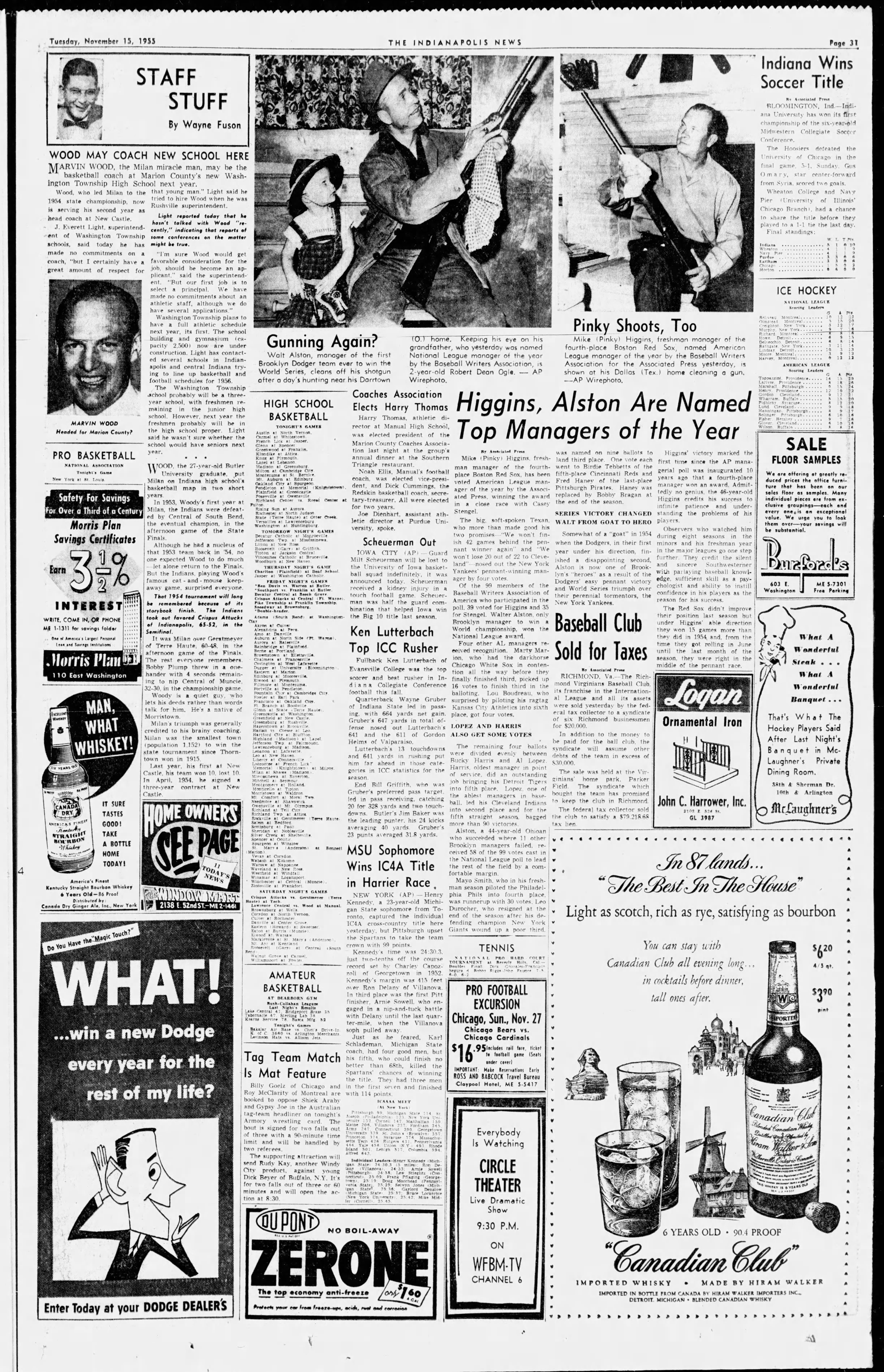 "Wood May Coach New School Here," The Indianapolis News, Indianapolis, Indiana; Tuesday, November 15, 1955 ; Page 31.