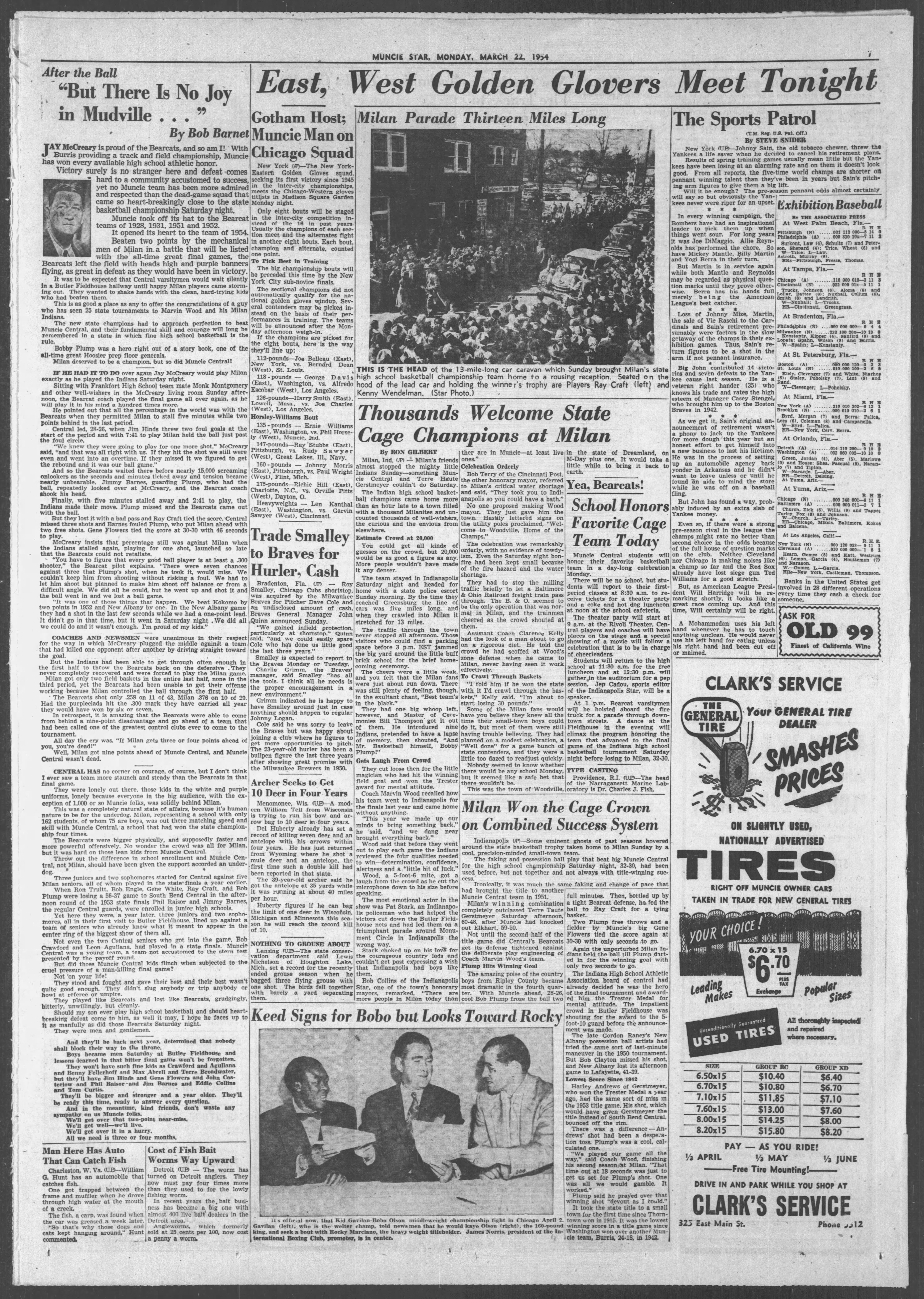 "Milan Parade Thirteen Miles Long," The Star Press, Muncie, Indiana; Monday, March 22, 1954; Page 7.
