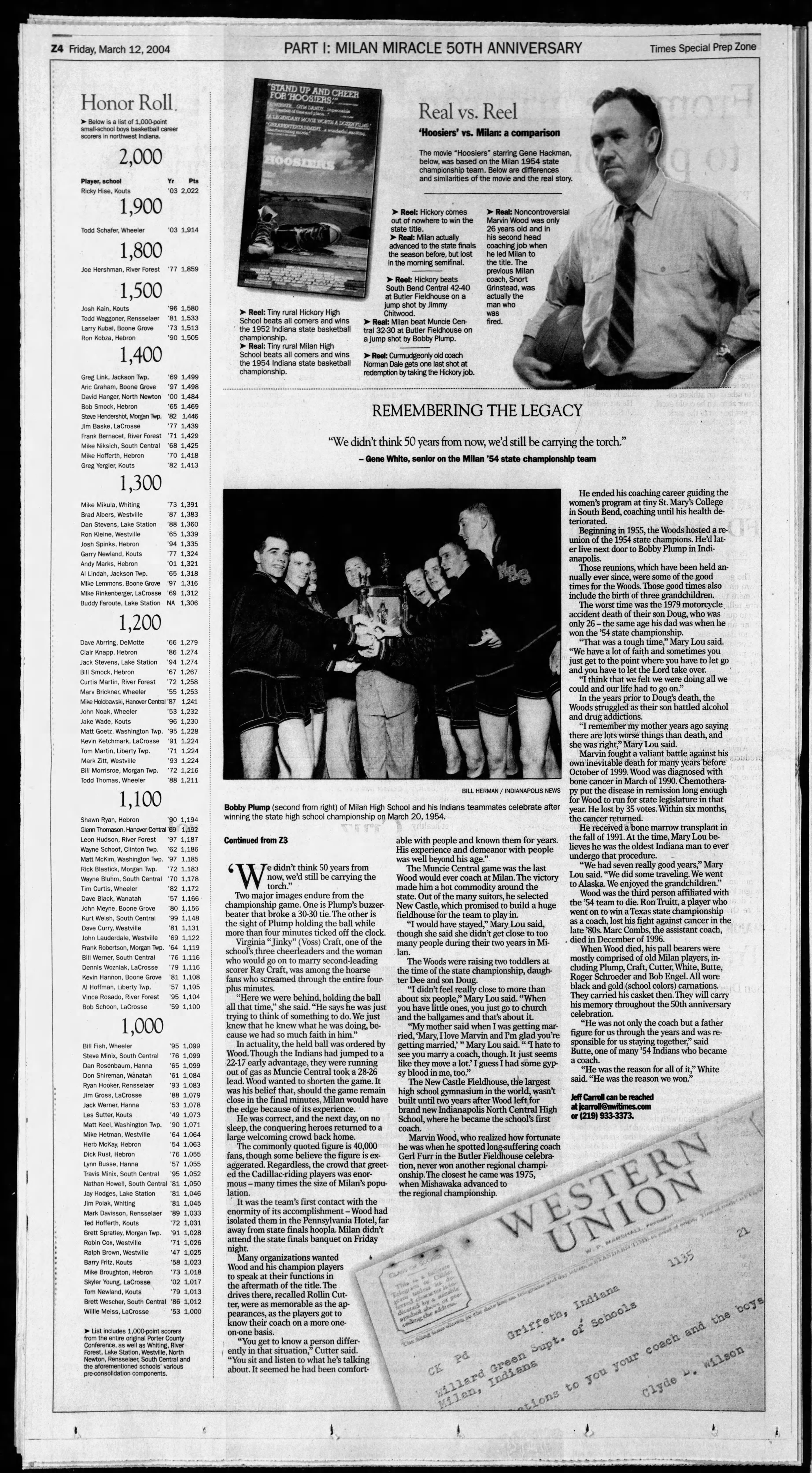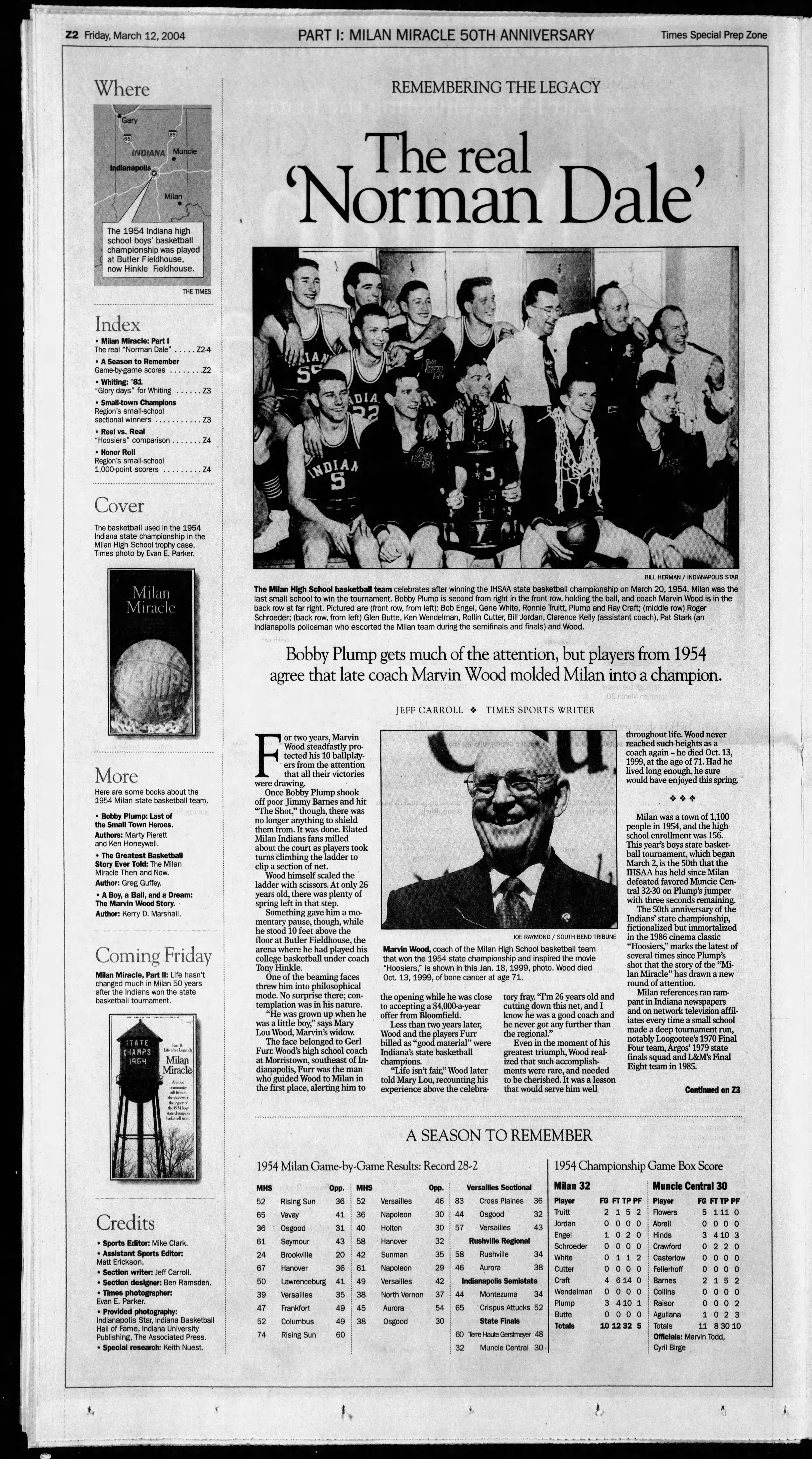 "The Real Norman Dale," by Jeff Carroll, The Times, Munster, Indiana; Friday, March 12, 2004; Page 68, 69, 70.