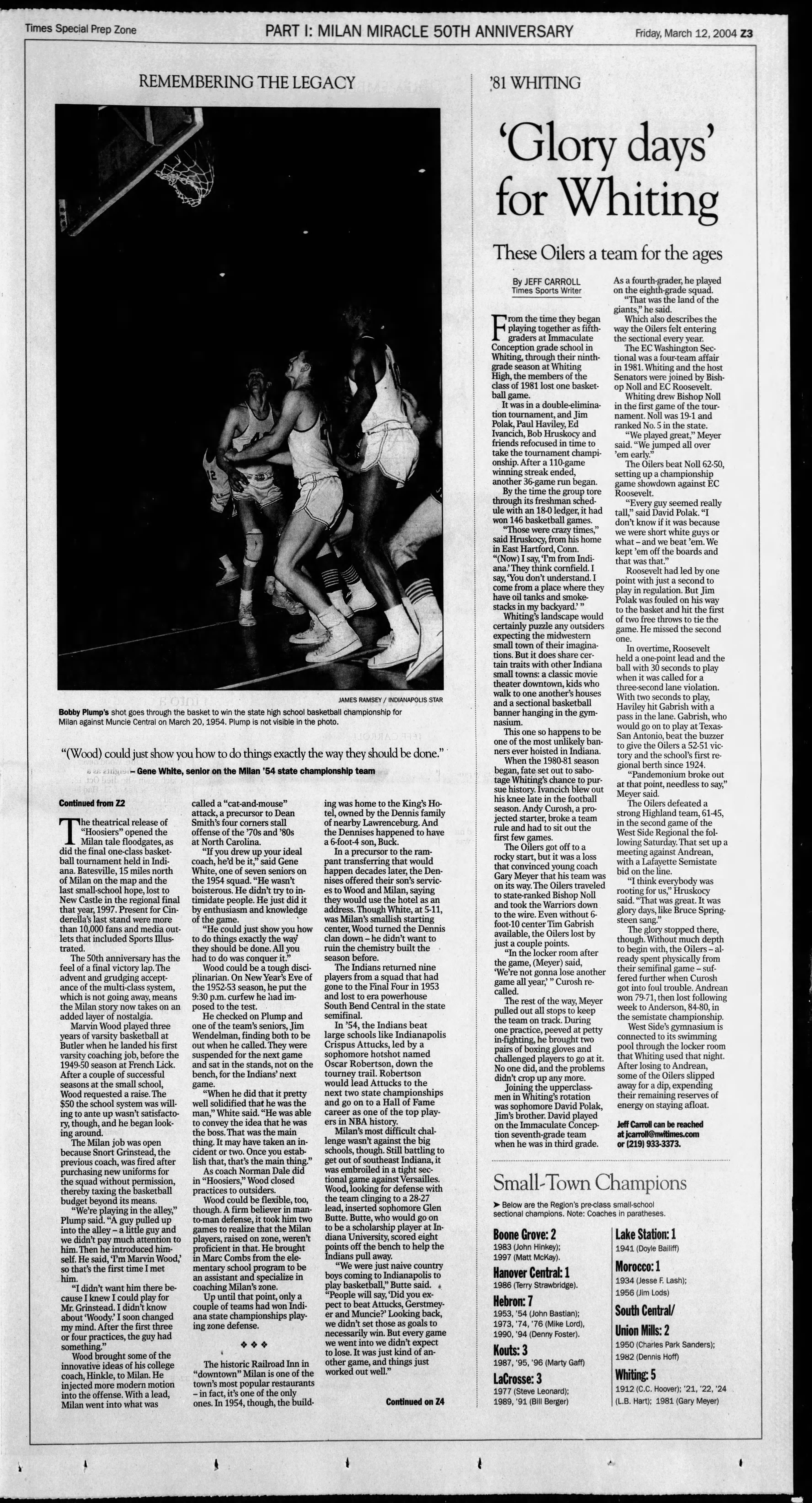 PLACE IN HISTORY: The Indianapolis Star said the "Milan Miracle" was the top sports story in Indiana history.