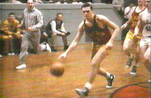 But the real story actually begins a year before that championship season. In the 1952-1953 season, their new coach, Marvin Wood, brought a "continuity basketball" program to one of the state's smallest high schools and also taught his young charges a full-court trapping defense and a four-corners offense he called "the cat and mouse." At first Wood was not very popular in the community -- he was replacing a very popular coach, and closed the team's practice sessions to the public while changing the offensive and defensive schemes. This caused quite a bit of controversy. But under his leadership, the Indians advanced