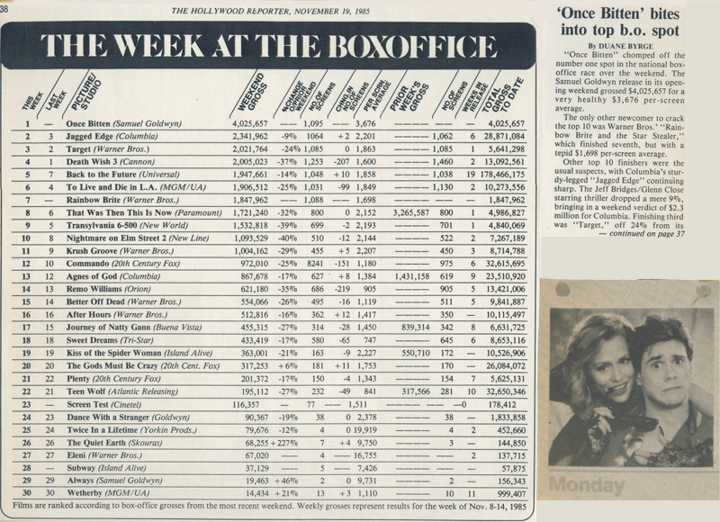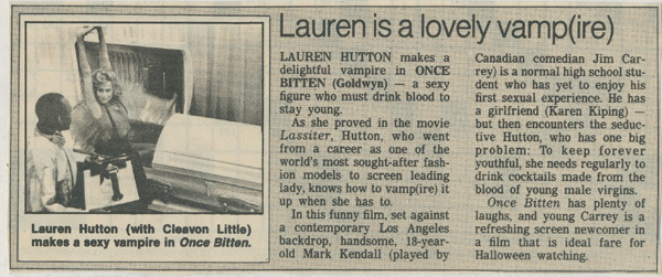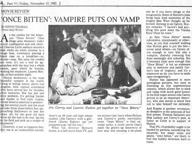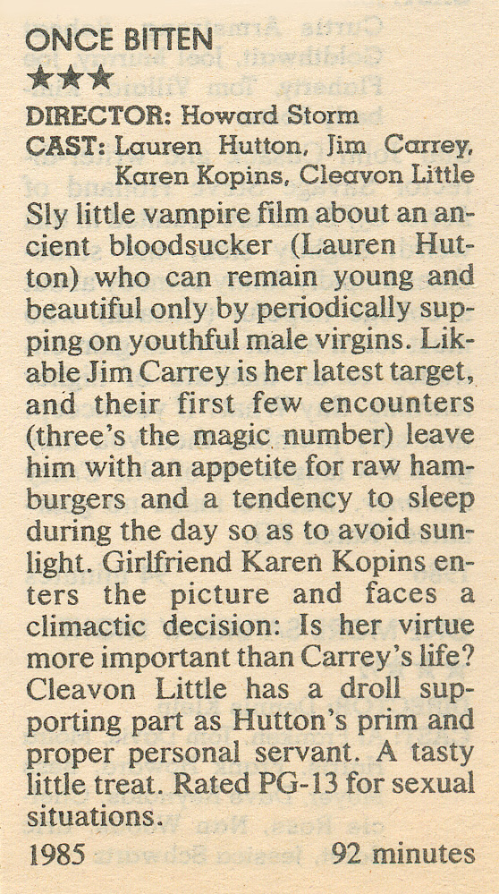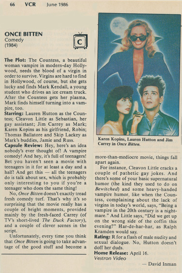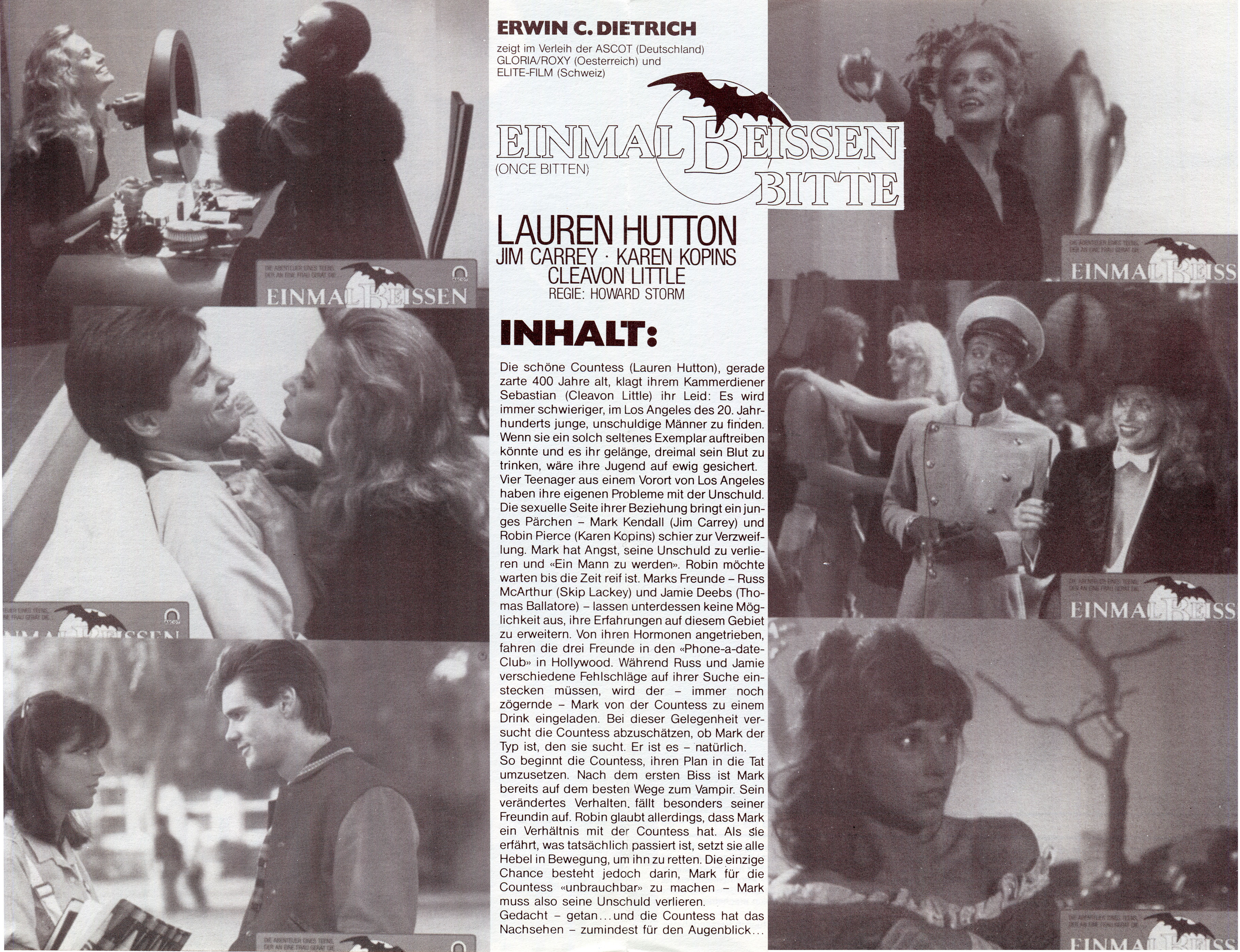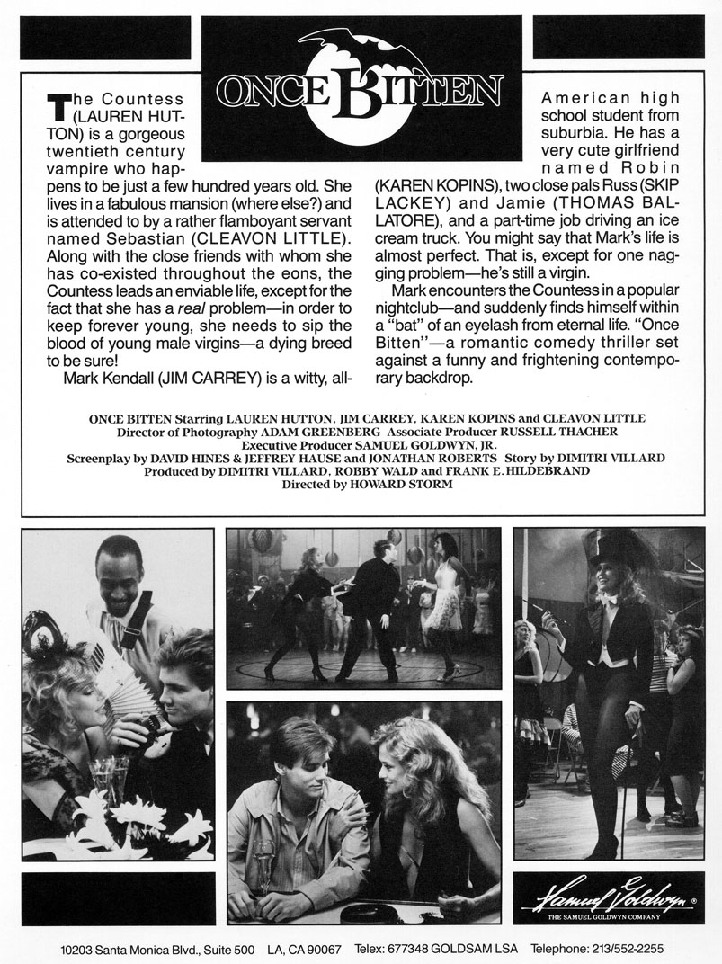 | Once Bitten opened in the United States in November of 1985, followed by West Germany in 1986, and then cut a swath through France, Poland, and Eastern Europeclosely following the brutal, destructive path of Hitler's Third Reich during World War II. It has since played throughout the world, where people of all races, creeds and religions have joined in the communal experience of not laughing at my jokes: |