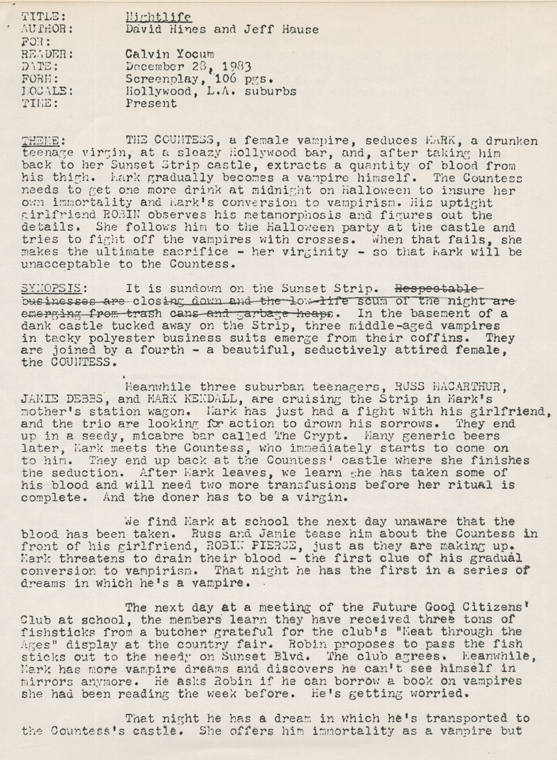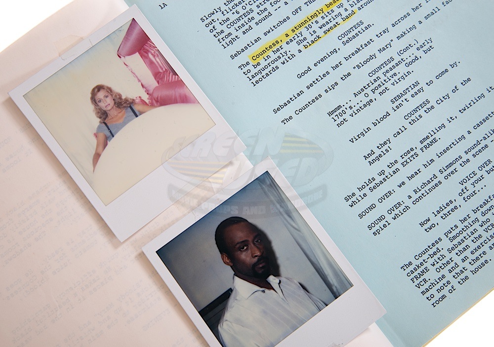 | In 2011, the film's continuity script (for makeup, hair, clothes, etc.) went up for auction on eBay. The 118 page production script is dated February 8, 1985 and features many highlighted sections -- and page after page of attached continuity Polaroids of the actors. I bid $500 (actually $501.01, to be precise), thinking that no sane person would outbid me at that price... and lost to these guys: Screen Used Movie Props and Wardrobe. Months later (unbeknownst to me), they re-sold it... for $150 less than I had bid on eBay! Nice business model, film nerds! (UPDATE: They're out of business -- and whoever bought it doesn't appear to be using the images for promotional or publishing purposes, so if you're reading this: CONTACT ME!) Here are a few images from the auction. The first seven are from the original sale on eBay, and the rest are from the auction site: |