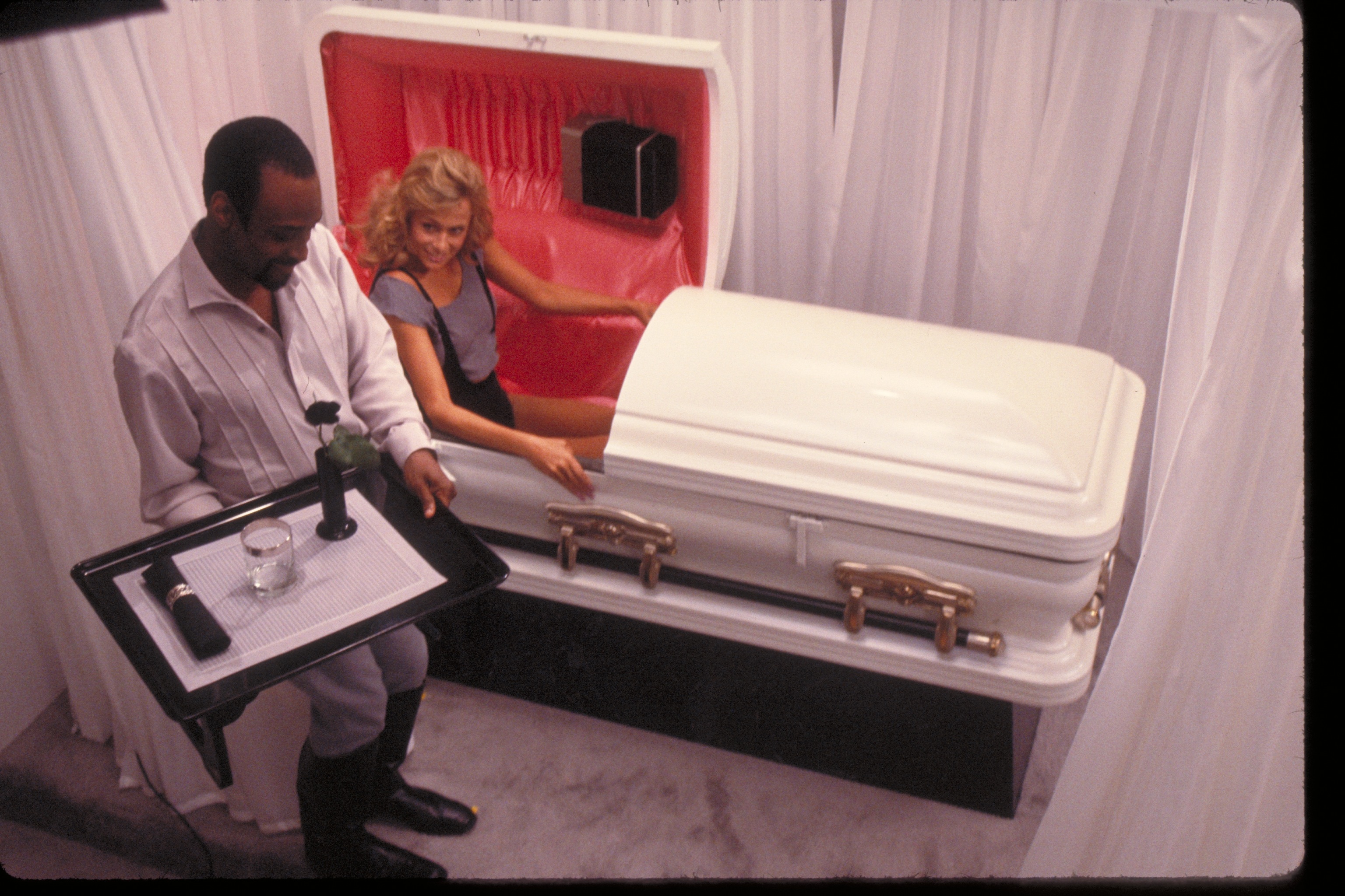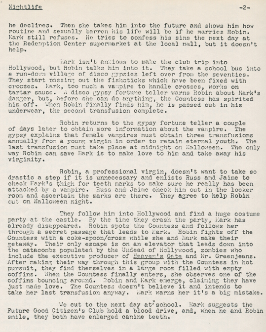 | The following photos are from: A) a graveyard scene that was never filmed (however, publicity photos were still taken), and B) a wedding scene from a dream sequence that was filmed but cut after test screenings. Part of the cut footage can also be seen in the film's trailer. (Countess: "How would you like to spend eternity with me?" Mark: "I can't. I've gotta to go to college.") |