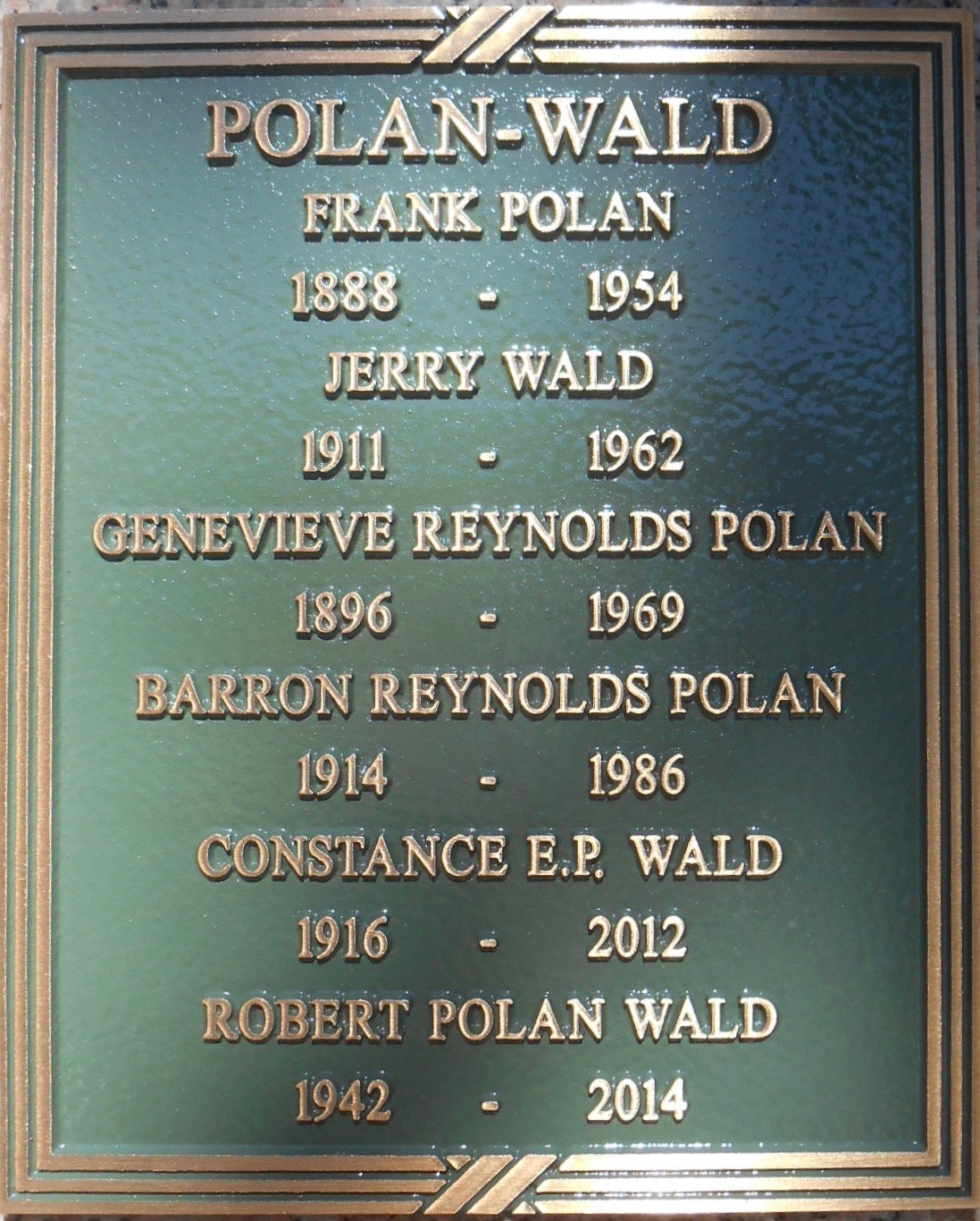 Connie Wald died in 2012, at the age of 96. Her last wishes to her sons were "No flowers, no servicesand don't cancel Thanksgiving."³ The brothers then held a holiday dinner with family and friends, which they cooked themselves and served in her home. "Always leave a party at the peak" was Connie's frequent exhortation to her sons, and my guess is that Robby usually ignored that advice. But as for the movie business, Robby left that party completely and kept to himself. Around 2000, Steve told me Robby was living in Malibu, and when he visited there was always a steady stream of pizza and starlettes coming in and out of the condo, but Robby himself never went outside, and it was sad. Robby left the world entirely in 2014 at the age of 71 (much younger in age than his mother, but much older than his father). He is buried with the Wald and Polan families in the Columbarium of Honor, Niche 2146, at Forest Lawn Memorial Park, Glendale, California.⁴ Rest in Peace, buddy. Don't wrinkle that suit.